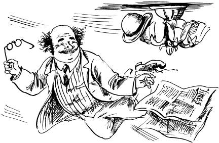 “I thought, Mr Wigg,” she began, looking searchingly round the room, “you’d be wanting some more hot – Well, I never!* I simply never!” she said, as she caught sight of them all seated on the air round the table. “Such goings on I never did see.* In all my born days I never saw such. I’m sure, Mr Wigg, I always knew you were a bit odd. But I’ve closed my eyes to it – being as how* you paid your rent regular. But such behaviour as this – having tea in the air with your guests – Mr Wigg, sir, I’m astonished at you! It’s that undignified, and for a gentleman of your age – I never did – ”
