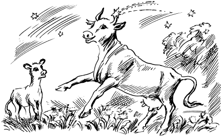 In the morning she was still dancing and the Red Calf had to take its breakfast of dandelions all by itself because the Red Cow could not remain still enough to eat.