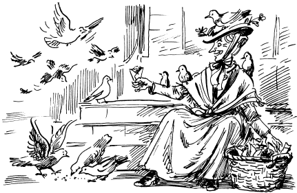 “Tuppence a Bag!” said the Bird Woman and waved her hand.