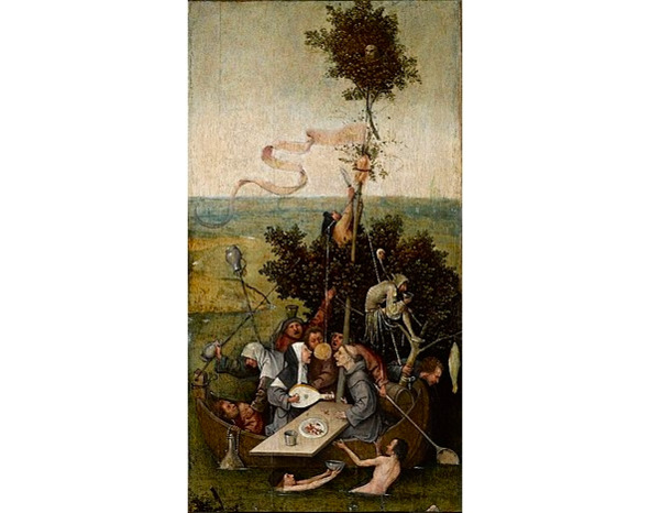 Возвращаясь к нашей веселой картине «Корабль дураков», надо сказать, что ее в литературе о Иерониме Босхе (не только исследовательской, но и любого толка, исследующей символический художественный язык Нидерландов – и это правда), называют народной. Есть такое мнение, что он апеллирует к фольклорным пословицам и поговоркам, т.е. к фольклорному опыту. К матрешкам, к какой-то обезличенности, к какому-то подобию, а не к индивидуальности, как у итальянцев. Очень часто многие задают себе вопрос: «Почему при всей гениальности Европа идет за Италией, а не за Нидерландами?». Ведь у них есть Брейгель и прочие замечательные художники. Они создали орган. Так почему Европа идет за Италией? А потому что Италия создала великую архитектуру, великую современную музыку и новую теорию гуманизма. Италия апеллировала к личности человека. Отдельности, человеку деятельному, человеку духовно-творческому. Босх апеллирует не к нации, не к фольклорному народу, как это очень часто объясняют, а к обезличенной массе людей.