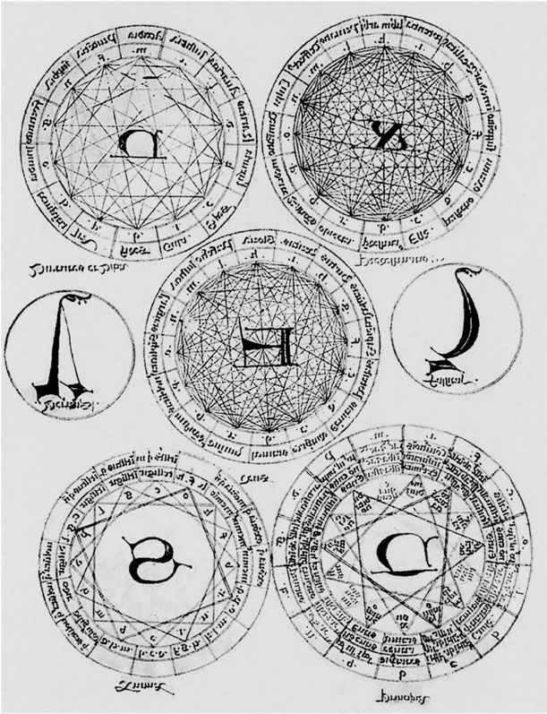 Геометрическое представление понятий: Бог, Душа, Добродетели, Пороки, Предопределение. Из трактата «Искусство изображения» XIII в. Городская библиотека. Бергамо.