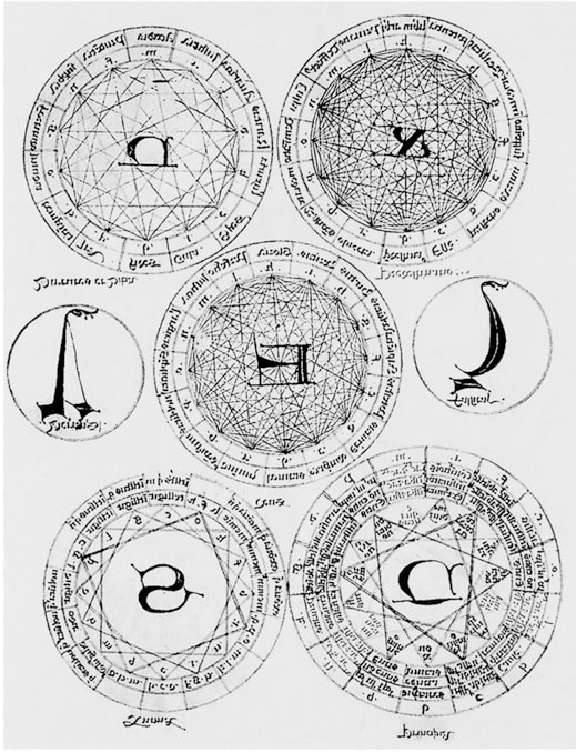 Геометрическое представление понятий: Бог, Душа, Добродетели, Пороки, Предопределение. Из трактата «Искусство изображения» XIII в. Бергамо. Городская библиотека.