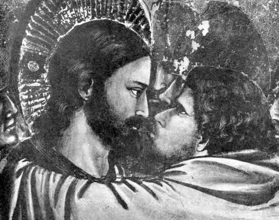 В нижнем правом углу церкви Джотто написал сцену поцелуя Иуды. Русская живопись этот сюжет не пишет. Поцелуй Иуды – сюжет трагический, предательский, как бы переломный внутри «страстей Господа».