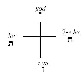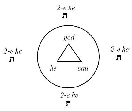 Наконец, третий способ изображения состоит в окружении Триады JOD-HE-VAU тонализирующей буквой – второй Не следующим образом: