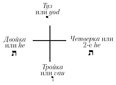 Серия мастей, которую мы изучаем имеет строгое соответствие с Тетраграмматоном, четыре масти соответствуют четырем буквам Божественного имени: