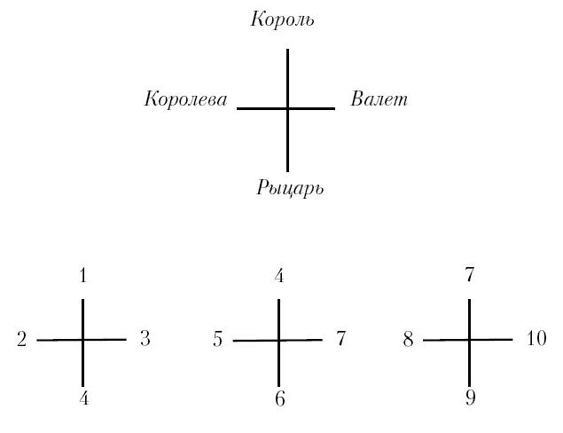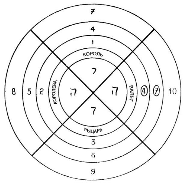 Отсюда карта 10 действует среди номеров также, как паж – среди карт-картинок, т. е. служит переходу. От чего к чему? От одной масти к другой.