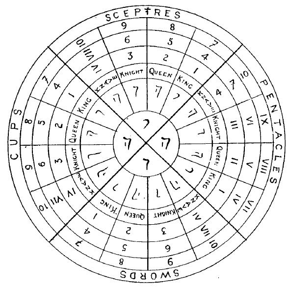 Только необходимо обратиться к изучению Таро числами, чтобы найти символы, которые согласуются с yod, he, Vau и he соответственно.