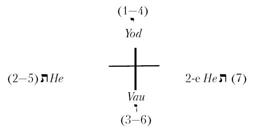 Эта тройка также может быть изображена через родство с Yod-he-vau-he.