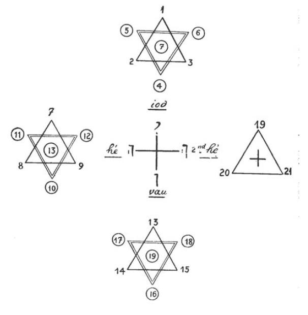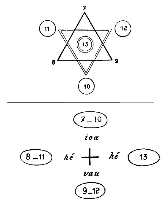 Следовательно, 4, означающая Yod, действует по отношению к 5 и 6 также, как и 1 по отношению к 2 и 3, и мы получаем еще одну тройку:
