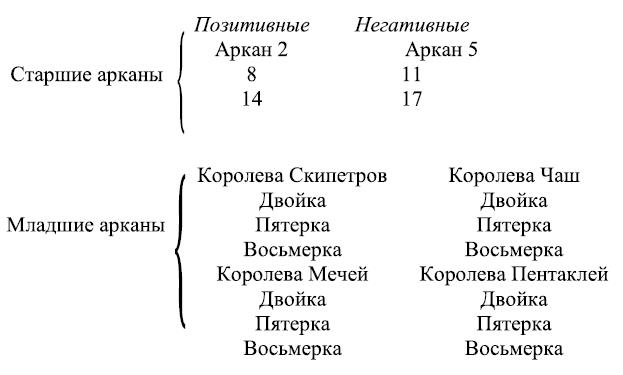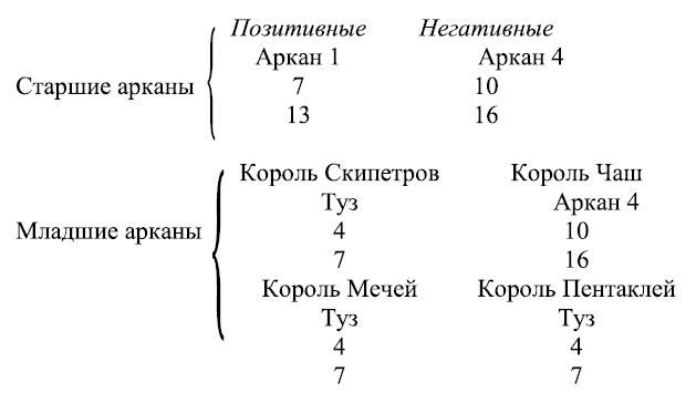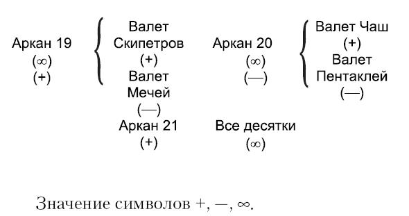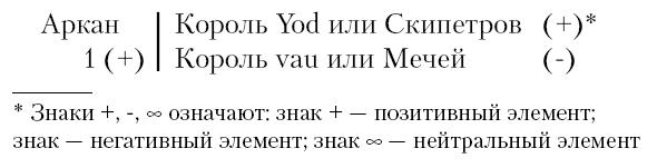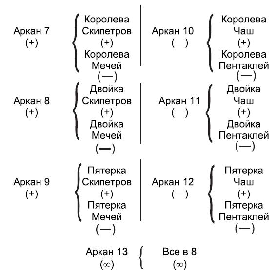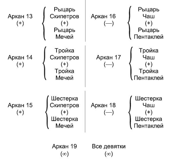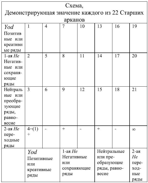 Таким образом три первых аркана определяют смысл всех других, согласно следующей таблице: