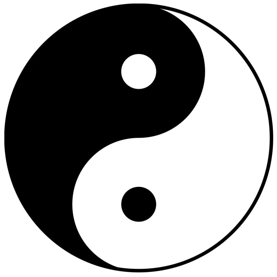 Белое поле равно черному, выпуклость одного – это вогнутость другого, вместе они составляют единый гармоничный круг, через центр которого проходит граница, чья кривизна равна половине радиуса круга.