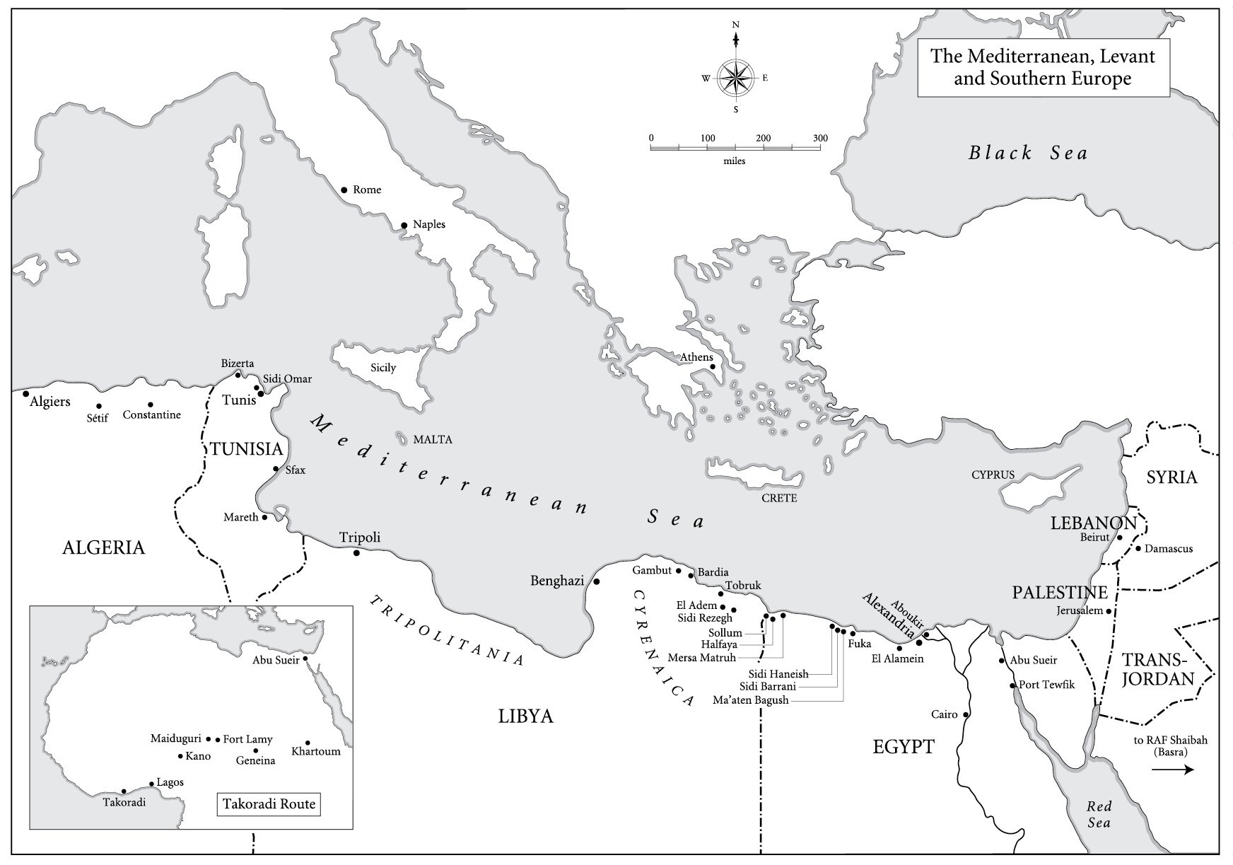 The Mediterranean, Levant and Southern Europe, showing the Takoradi Route