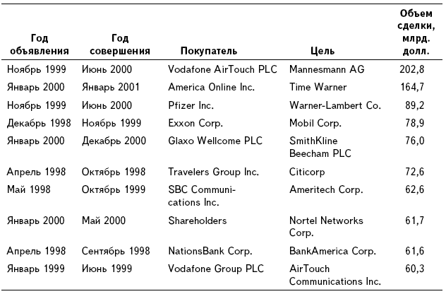 Таблица 1.1. Десять крупнейших слияний и поглощений