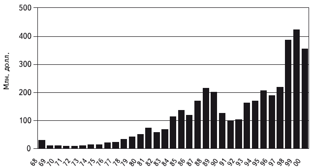 Рисунок 1.2. Средняя цена приобретения в США, 1968–2000 гг.