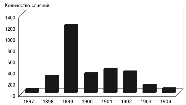 Рисунок 2.1. Слияния первой волны, 1887–1904 гг.