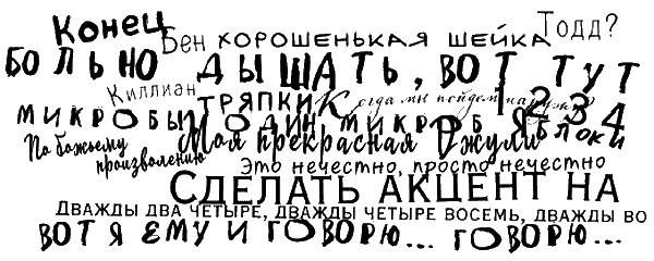 –Крыса! – по-своему понимает Мэнчи, и мистер Фелпс хохочет, но его Шум продолжает твердить конец, и Джули, и тряпки, и сыпать картинками того, по чём он особенно скучает в жене и што она, бывалоча, делала, как будто в этом есть што-то уникальное.