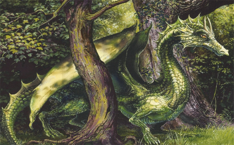 Дракончик приземлился на поляне и сложил крылья. По мере того как успокаивалось биение его сердца, звон чешуек на груди существа постепенно затихал. Под извилистыми корнями дуба спрятался источник. Из него вытекал ручеёк, прокладывая себе путь среди зелёной травы. Дракон подошёл к нему, просунул свою длинную шею между покосившимися камнями и хлебнул воды. Кровь брызнула на камни. Стрела скользнула по чешуе существа и пронзила основание одного из крыльев. Его кроткий вздох рассёк гладь водоёма.