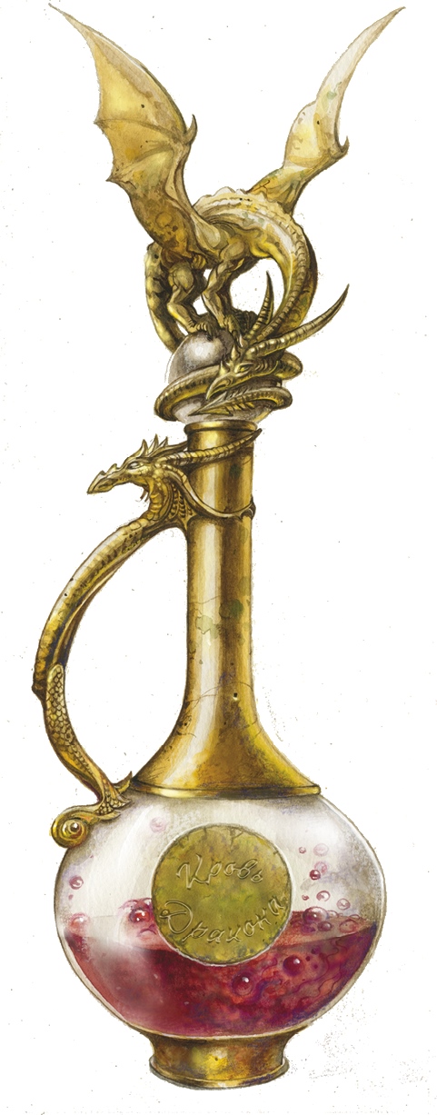 Прорицатели и колдуны очень бережно хранят несколько капель этого средства в склянке, которую носят на поясе. Ходит молва, что кровь дракона способна открыть знания и вечную мудрость, которыми обладают великие огнедышащие существа.