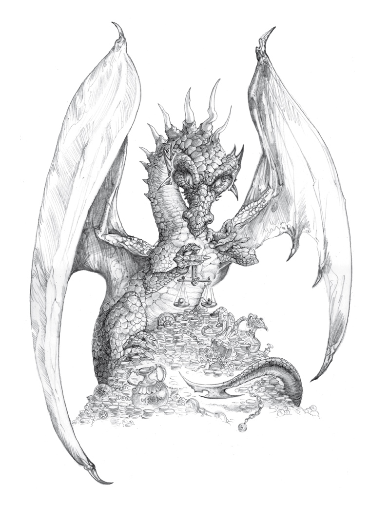 Мягкий янтарный свет заливал свод и стены огромной пещеры. В самом центре, словно ложе из раскалённых углей, сияющих огнём, громоздились монеты, сверкающие драгоценности, зачарованные мечи и доспехи филигранной работы…