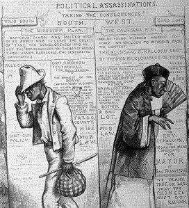 El Gobierno, confiando en el congénito deseo de manipulación del pueblo Americano y de su radicado racismo, definió precisamente los Chinos como “no deseados” privándolos de cualquier personalidad jurídica y concediendo plena inmunidad al individuo, que por lo tanto se sintió autorizado a “ hacerse justicia propia” .