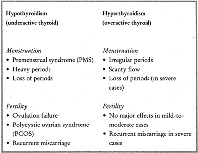 The thyroid gland is involved in virtually every bodily process, including those of the reproductive system, and thyroid disease is linked to a number of specifically female problems (see Table 3.1).