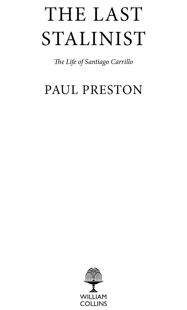 In a sense, the origins of this book date back to the 1970s when I first began to collect information about the anti-Francoist resistance. At the time and subsequently, I had long conversations with many of the protagonists of the book, including Santiago Carrillo himself. Many of those who shared their opinions and memories with me have since died. However, I would like to put on record my gratitude to them: Santiago Álvarez, Manuel Azcárate, Rafael Calvo Serer, Fernando Claudín, Tomasa Cuevas, Carlos Elvira, Irene Falcón, Ignacio Gallego, Jerónimo González Rubio, Carlos Gurméndez, Antonio Gutiérrez Díaz, K. S. Karol, Domingo Malagón, José Martinez Guerricabeitia, Miguel Núñez, Teresa Pàmies, Javier Pradera, Rossana Rossanda, Jorge Semprún, Enrique Tierno Galvan, Manuel Vázquez Montalbán, Francesc Vicens and Pepín Vidal Beneyto.