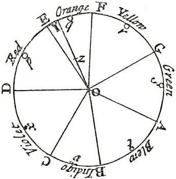 В монографии «Оптика» (1704) Ньютон разделил цвета на основные (красный, синий и желтый), вторичные (зеленый, оранжевый и фиолетовый) и третичные (цвета, названия которых пишутся через дефис). Смешивая основные цвета, можно создать любой другой цвет. Своими экспериментами Ньютон доказал, что белый свет можно разложить на чистые «призматические» цвета (цвета радуги), а затем объединить их и снова получить белый свет. И вот какой вывод сделал ученый: «Если бы солнечный свет состоял из одного только сорта лучей, во всем мире был бы только один цвет»[2].