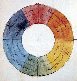 Симметричное цветовое колесо Гёте с «взаимно вызванными цветами». 1810