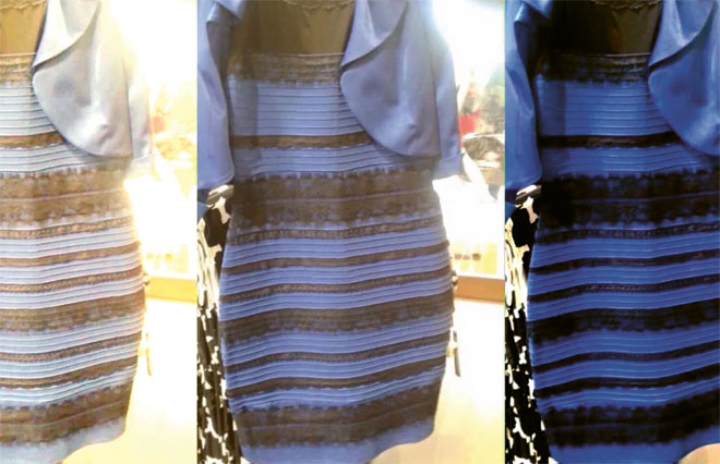 Когда в 2015 году в Twitter была опубликована фотография этого платья, две трети пользователей заявили, что оно бело-золотое. В действительности платье было сине-черным