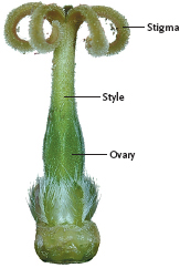 Stigma – receptive surface of the female part of a flower, to which pollen adheres.
