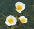WATER-CROWFOOTS – equal-sized petals; flowers usually solitary; white petals; aquatic; see pp.