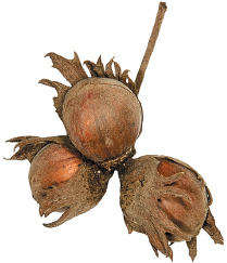 The fruits of trees and shrubs are much more varied than the cones of the conifers. They range from tiny papery seeds with wings, through nuts and berries, to large succulent fruits in a variety of shapes and colours. Edible fruits are designed to assist dispersal of the seeds by animals and many are delicious to the human palate.