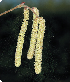 Even a slight breeze will liberate pollen from the male catkins of Hazel