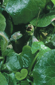 Evergreen perennial associated with shady banks and woodland margins. Creeping, hairy stems. In suitable locations, forms carpets often alongside ivy. FLOWERS Purplish brown, 15mm long, bell-shaped with 3 terminal lobes (May–Aug). FRUITS Brownish capsules. LEAVES Dark green, shiny, kidney-shaped. STATUS Native in a few locations but also naturalised.