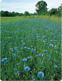 Thankfully, it is still possible to find agricultural fields where Cornflowers and other arable weeds thrive alongside the desired crop plant, either by design or where non-intensive farming methods are used. Let us hope that sights such as this become more commonplace as enlightenment, or financial inducements, change the way some of the land is farmed.