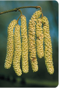 Dense woodland shrub or small tree; often coppiced. FLOWERS Catkins (male) or small red, tufted structures (female) (Jan–Mar). FRUITS Hard-cased nuts, green, ripening brown in autumn. LEAVES Appearing after flowers, 6–8cm long, circular to oval, with double-toothed margins. STATUS Common and widespread.