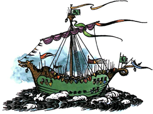 “And we sailed from Galma,” continued Drinian, “and ran into a calm for the best part of two days and had to row, and then had wind again and did not make Terebinthia till the fourth day from Galma. And there their King sent out a warning not to land for there was sickness in Terebinthia, but we doubled the cape and put in at a little creek far from the city and watered. Then we had to lie off for three days before we got a south-east wind and stood out for Seven Isles. The third day out a pirate (Terebinthian by her rig) overhauled us, but when she saw us well armed she stood off after some shooting of arrows on either part—”