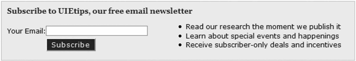 Рис. 2.2. Сайт UIE перечисляет преимущества подписки на свою электронную новостную рассылку, «UIEtips»