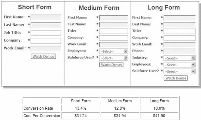 Исследование, проведенное Relevant Ads, показало, что более короткие формы чаще заполняются (рис. 2.8). Сократив формы, можно также сократить вероятность возникновения ошибок, поскольку пользователям приходится иметь дело с меньшим количеством элементов формы. В дальнейшем это увеличивает шансы успешного заполнения формы, которое приводит к более высокому показателю эффективности.