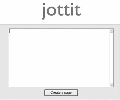 Сервис Jottit предоставляет еще один пример самой короткой и, возможно, самой эффективной формы (рис. 2.10). Чтобы создать интернет-страницу, пользователи просто печатают в поле ввода то, что они хотят разместить на своей странице и щелкают по кнопке «Create a page».