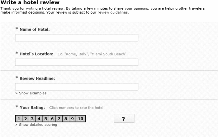 Рис. 2.20. На сайте TravelPost указатели на обязательные поля находятся слева от меток, расположенных над элементами формы. Однако обратите внимание, что в метках используется полужирный шрифт, что не рекомендуется, поскольку выделенные жирным шрифтом метки увеличивают время на заполнение формы (Penzo, 2006)