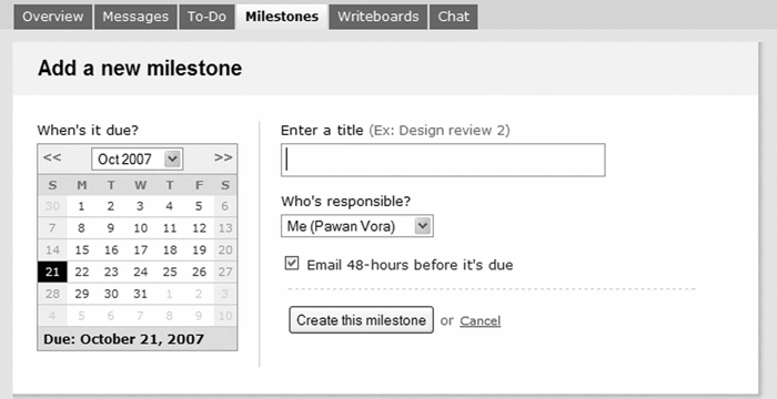 Рис. 2.17. На сайте Basecamp над полями расположены метки с неформатированным текстом