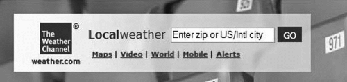 Рис. 2.23. На сайте канала погоды пользователи могут ввести индекс или название своего города, чтобы узнать информацию о погоде. Для этого используется только одно поле для ввода текста вместо двух отдельных