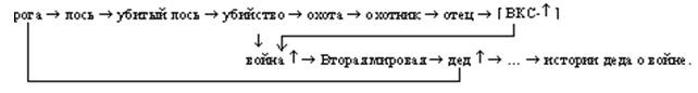 1: рога 2: лось 3: убитый лось 4: убийство А: 5: охота 6: охотник 7: отец [ а: ВКС– ] + Б: 8: война (а) 9: Вторая мировая 10: дед / 1 … истории деда о войне.