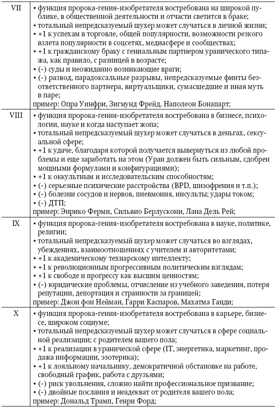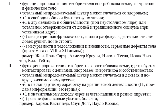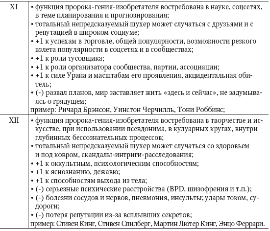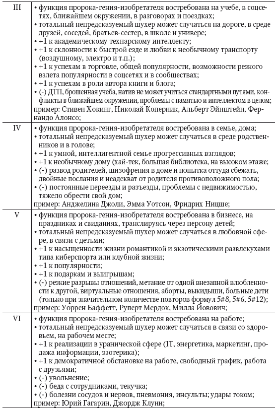 8) Профессия: организаторские и политические, наука (особенно точные, физика-математика), авиация, IT, изобретательство, писатель-фантаст, профессии будущего (green energy), бизнес-планирование, оптимизация бизнес-процессов; на низшем уровне – электрик, цирковой работник, бомжи и преступники, которые выпендриваются против существующего социального устройства.