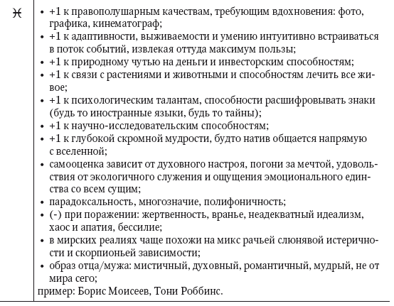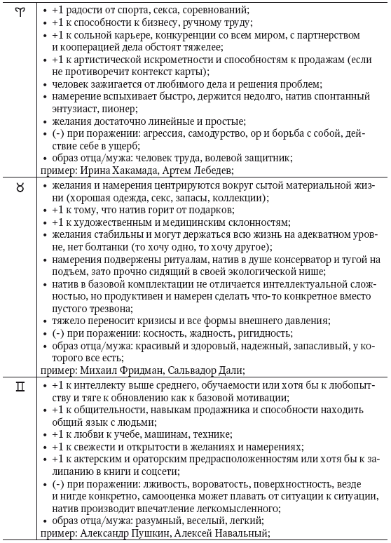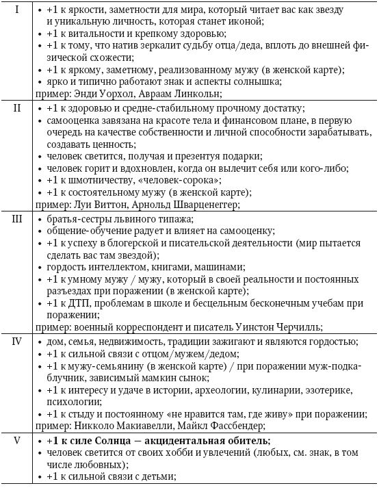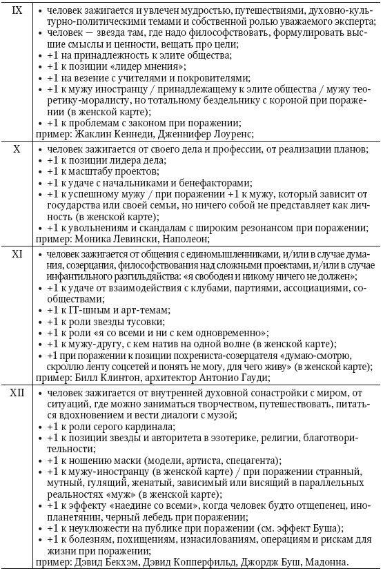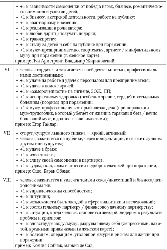 Не стоит впадать в ловушку редукционизма: все указания карты интерпретируются эксклюзивно в сочетаниях. Выше приведены лишь гипотетические ориентиры, которые модифицируются контекстом до неузнаваемости. Помним, что карта рождения по классификации теории систем является нелинейной неаддитивной системой, где элементов так много, их комбинации настолько сложны и роль шанса в процессе комбинаторики настолько велика, что ее невозможно интерпретировать «в лоб» примитивной суммацией компонентов.