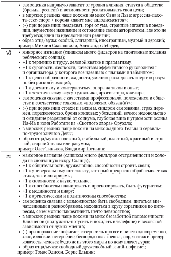 И обратите внимание на формулировки интерпретации Солнц в знаках учительской зоны. В мирских реалиях = в обычной жизни встречается реально мало идеологов-философов Стрельцов, управленцев Козерогов, гениев политики и науки Водолеев и вдохновенных визионариев Рыб.