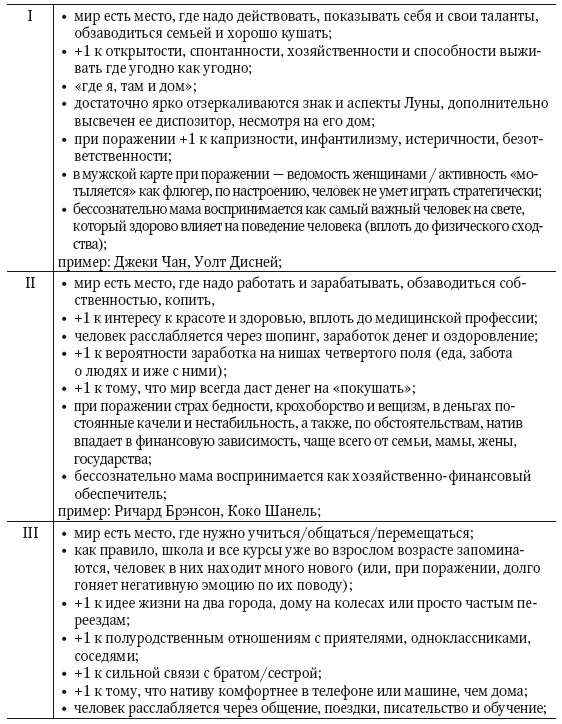 • сильная гармоничная ☽ в гороскопе: для натива весь мир – дом родной, натив заботится сам и любит, чтобы заботились о нем, легко приспосабливается к любым ситуациям (увольнение, развод, разорение – поплакали и поехали дальше);