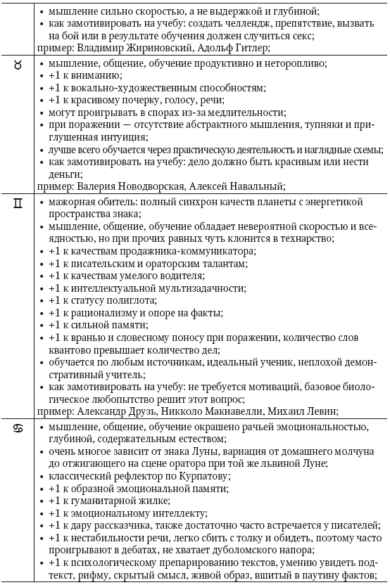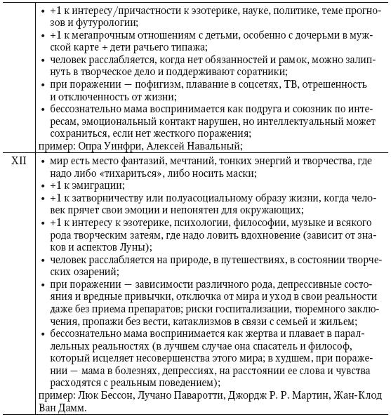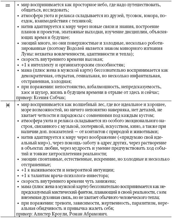 Не стоит впадать в ловушку редукционизма: все указания карты интерпретируются эксклюзивно в сочетаниях. Выше приведены лишь гипотетические ориентиры, которые модифицируются контекстом до неузнаваемости. Помним, что карта рождения по классификации теории систем является нелинейной неаддитивной системой, где элементов так много, их комбинации настолько сложны и роль шанса в процессе комбинаторики настолько велика, что ее невозможно интерпретировать «в лоб» примитивной суммацией компонентов.