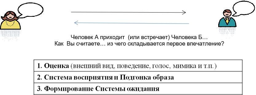 Считается, что первое впечатление при контакте с новым человеком формируется в течение 3-5 секунд, в течение последующих 20-60 секунд первое впечатление закрепляется.